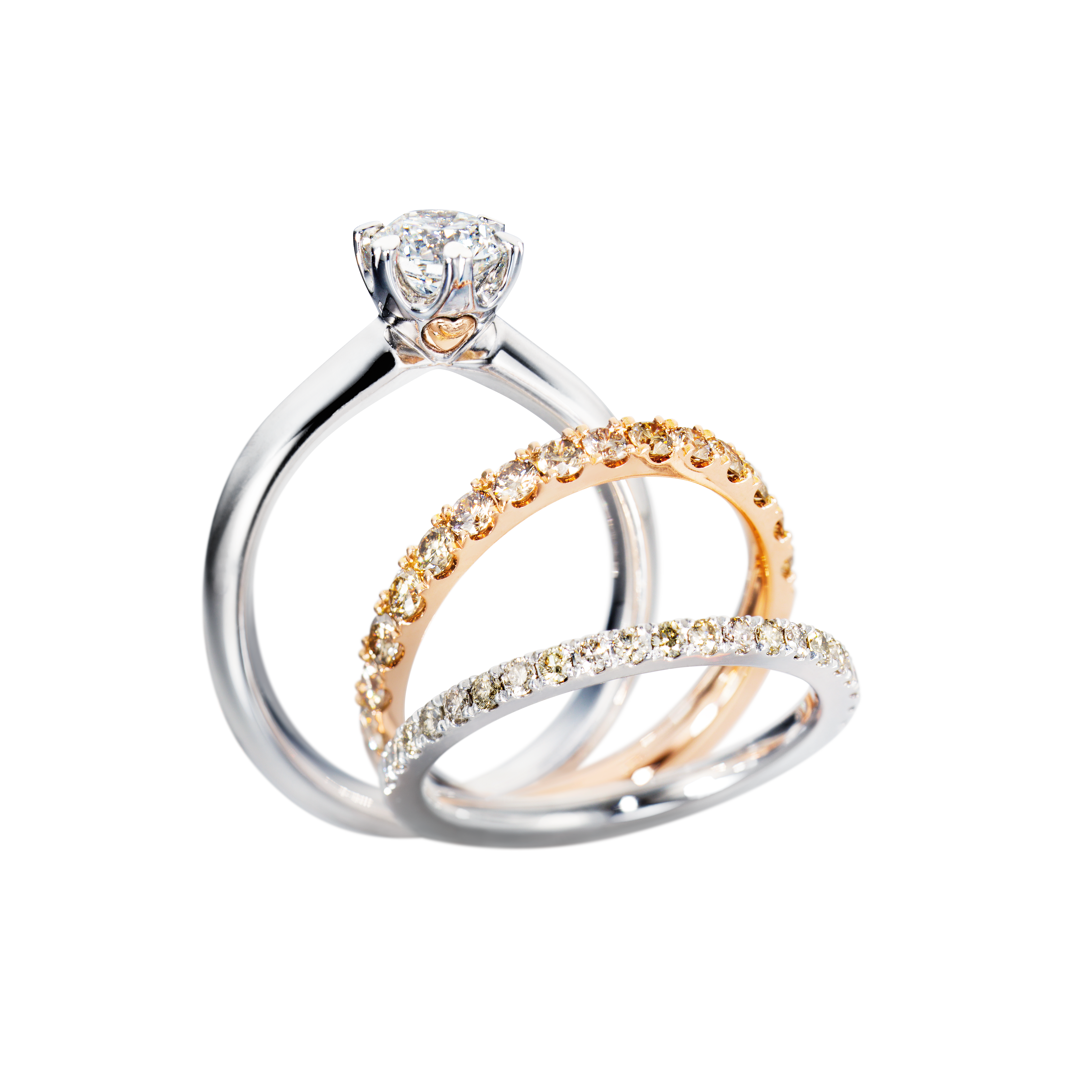 Wir von CAPOLAVORO haben bei dem Design der Ringschiene von unseren Ringen aus der Diamante in Amore Linie extra darauf geachtet, dass diese Ringe sich harmonisch und nahtlos an einen Ehe- oder Memoirering schmiegen.