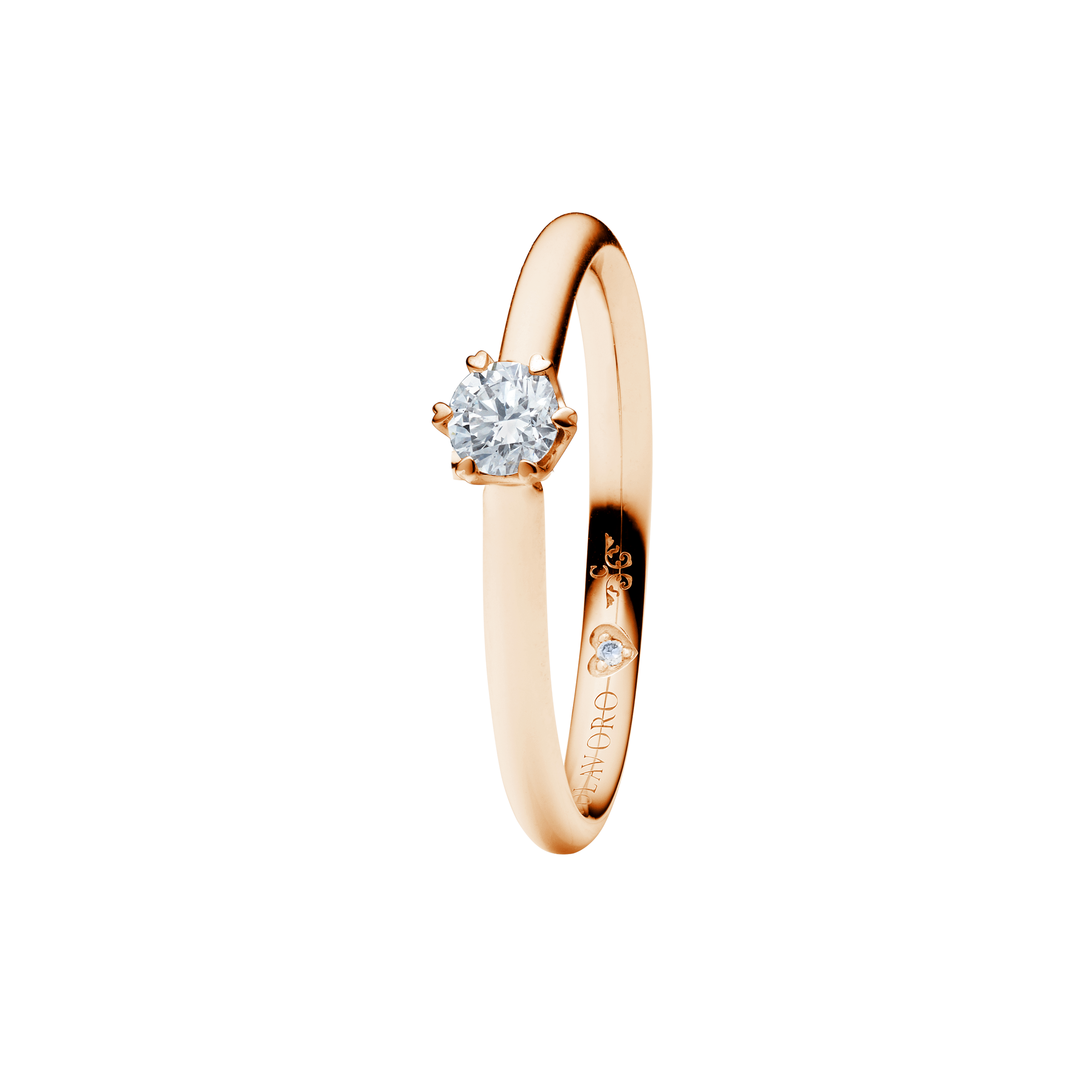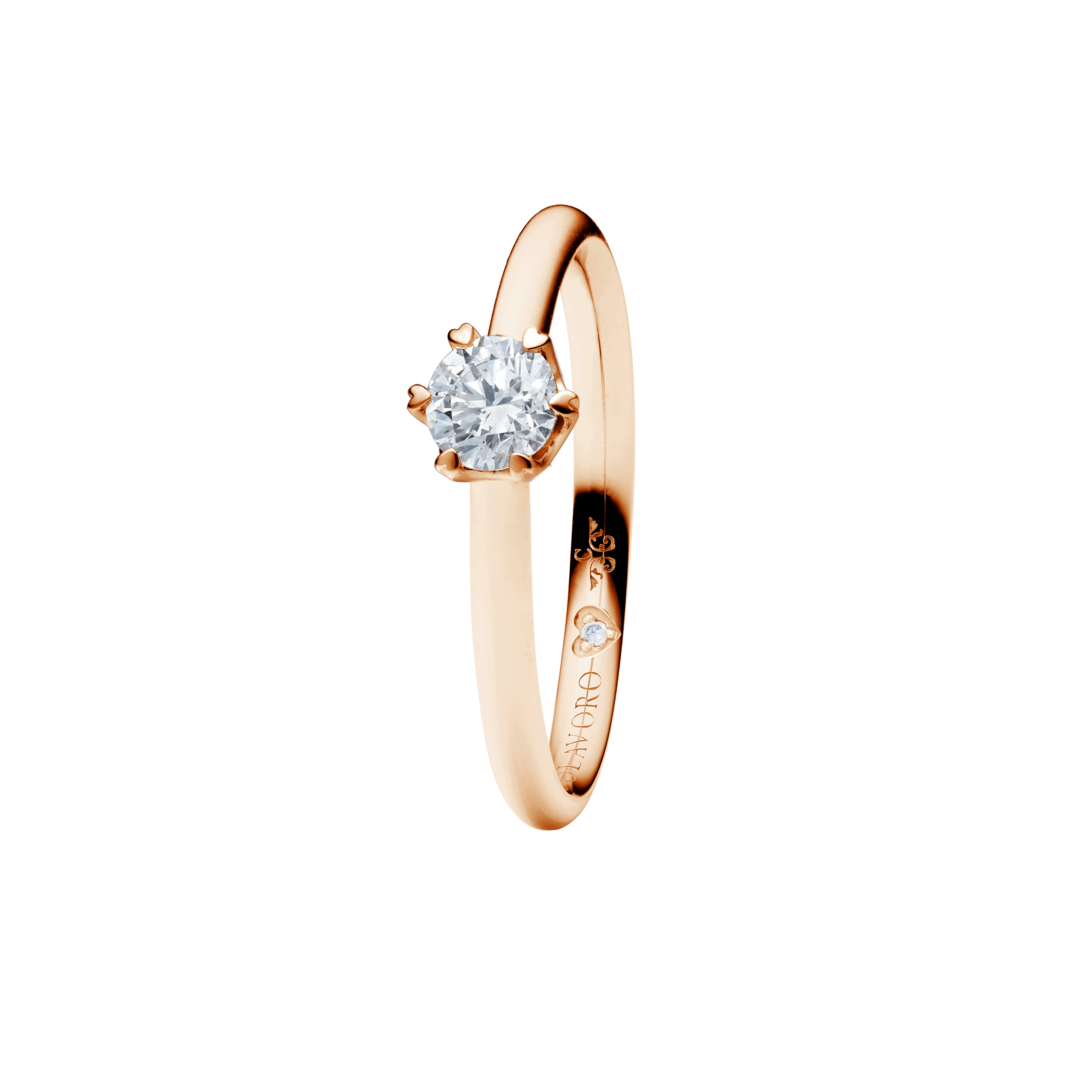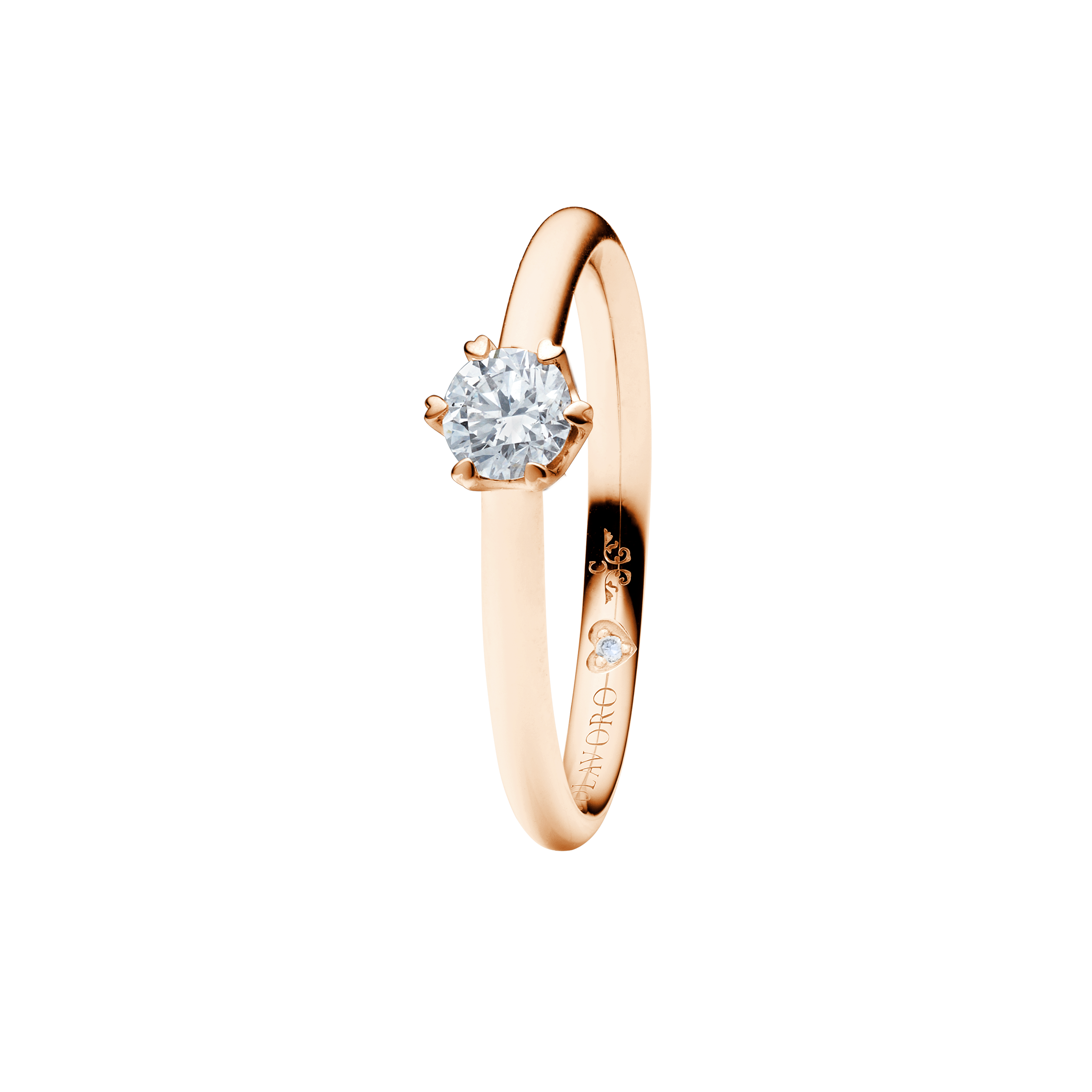 Das Karatgewicht eines Diamanten bezieht sich auf seine Größe und ist ein Maß dafür, wie viel er wiegt. Der True Love Ring kann ab einer Größe von 0,30 ct angefertigt werden - sonst würden die 6-Herz-Krappen die den Diamanten halten nicht zur Geltung kommen .