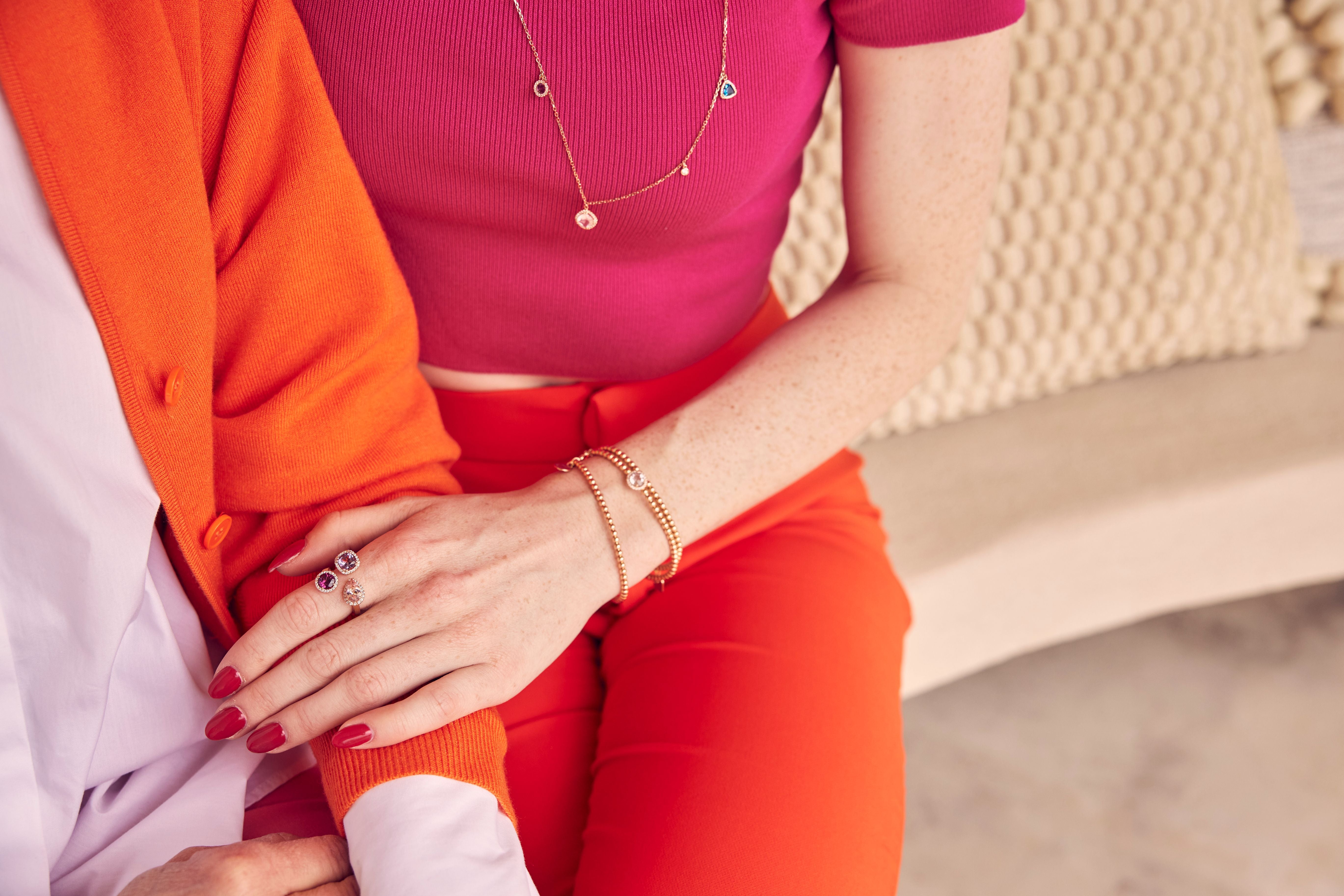 The flexible bracelets can dance solo or shine in a group, they are also the perfect add-on to your watch. Combine gold, colored stones, diamonds or personalized elements according to your favorite. The possibilities for flexible arm candy are endless.